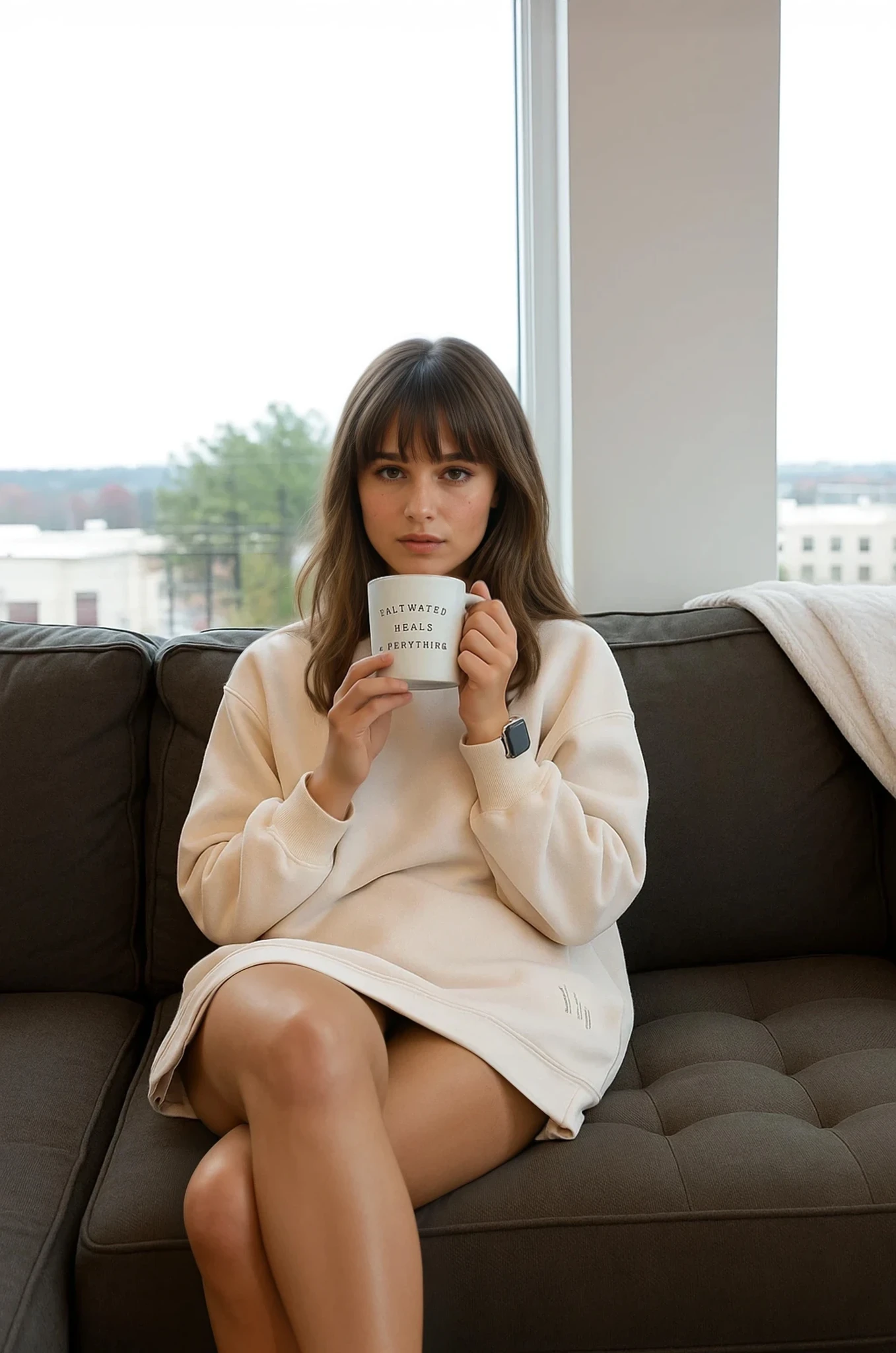 This sweatshirt dress has become my go-to for running errands or just lounging at home. It's so comfy, and the length is perfect for wearing with leggings or even just by itself